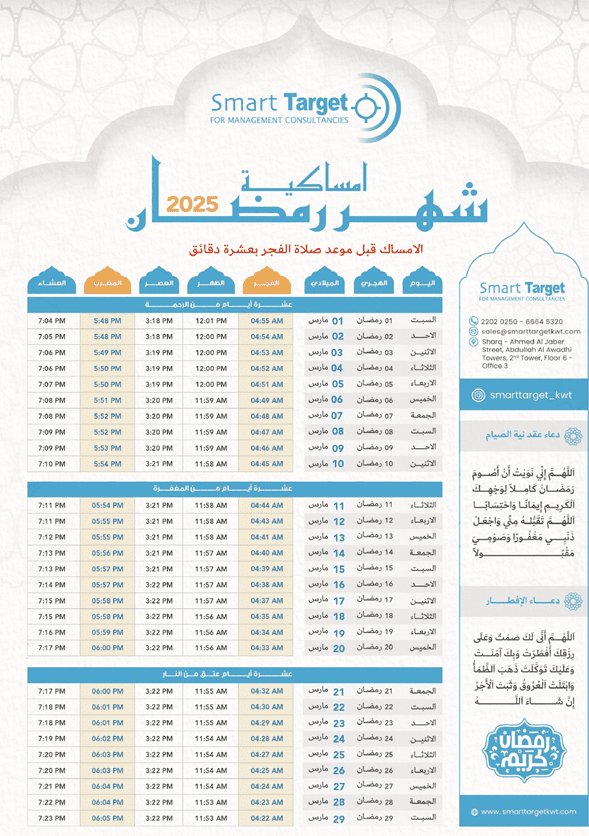 إمساكية رمضان 2025 | سمارت تارجت تقدم لكم الجدول الرمضاني وخدمات التسويق الرائدة